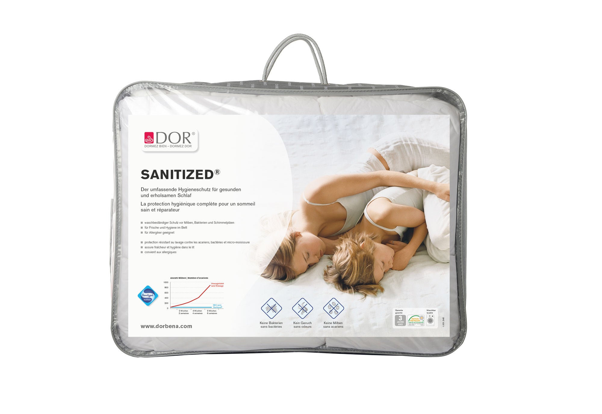 Die Duvet mit Sanitized-Hygieneschutz bietet langanhaltenden Schutz vor Hausstaubmilben, Bakterien, Schimmelpilzen und schlechten Gerüchen. Gefüllt mit feinen Polyesterhohlfasern und umhüllt von atmungsaktivem Microgewebe, ist es pflegeleicht, strapazierfähig und sorgt für ein gesundes Schlafklima – ideal für Allergiker.